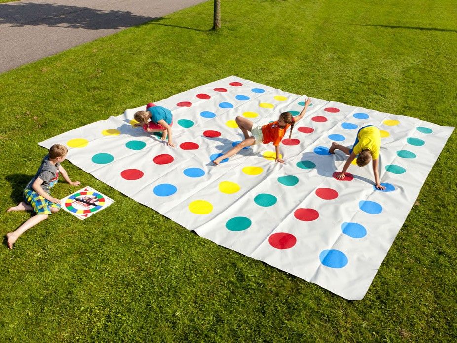 Chaque concurrent tente de suivre les instructions de la roulette sans tomber.