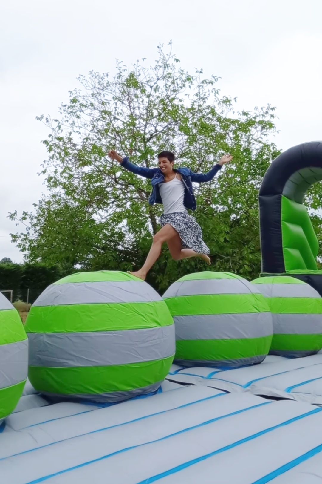 Les participants tentent de traverser le jeu en sautant de boules en boules sans tomber.