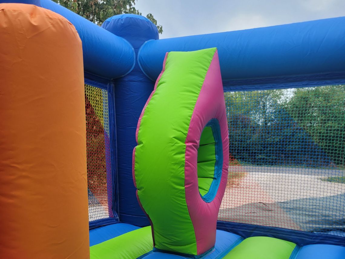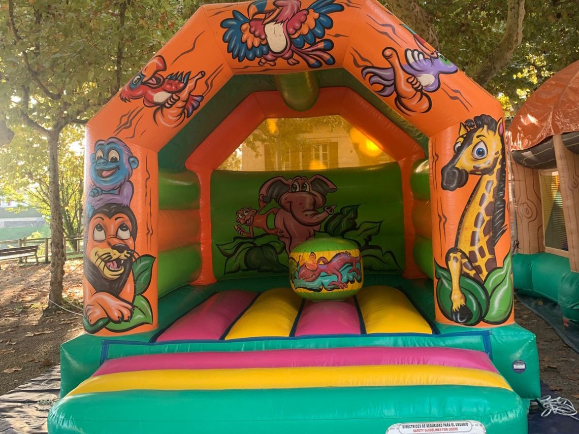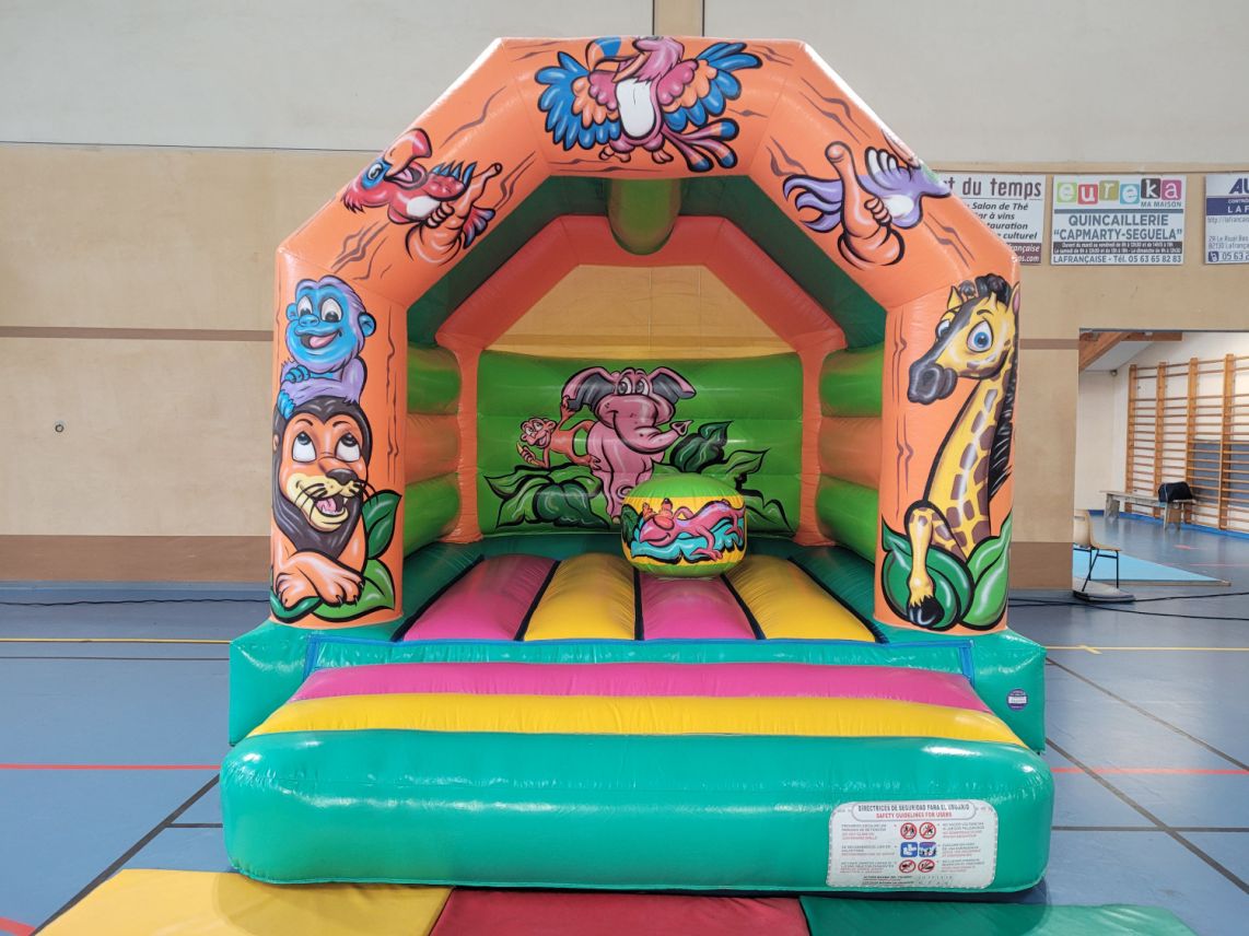Le château gonflable enfants La Jungle est idéal pour les petits espaces et petits budgets. Un obstacle est présent à l'intérieur. Son toit permet aux enfants de profiter du jeu à l'ombre.