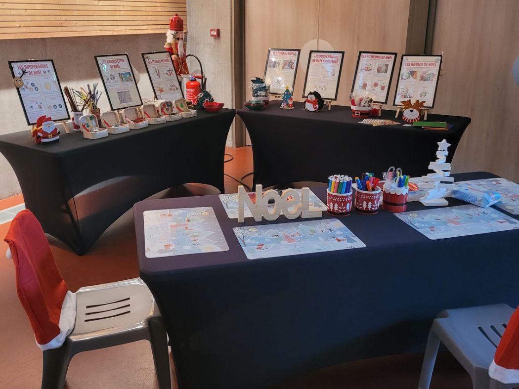Lors des ateliers créatifs de Noël, les enfants créeront un objet parmi 6 au choix (décorations, chaussettes de Noël...) et repartiront avec un souvenir de leur journée de Noël.