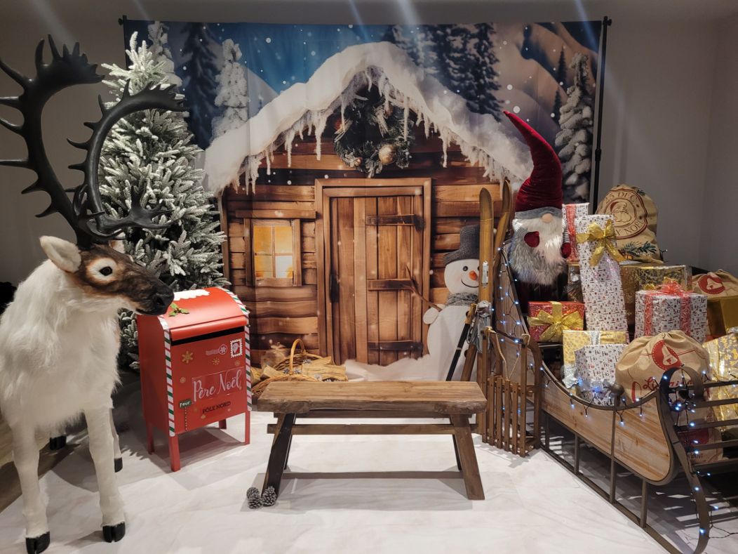 Dans le décor "Bienvenue chez le Père Noël", les enfants pourront prendre place auprès de votre Père Noël, glisser leur liste de cadeaux dans la boite aux lettres et éventuellement, repartir avec une photo souvenir.