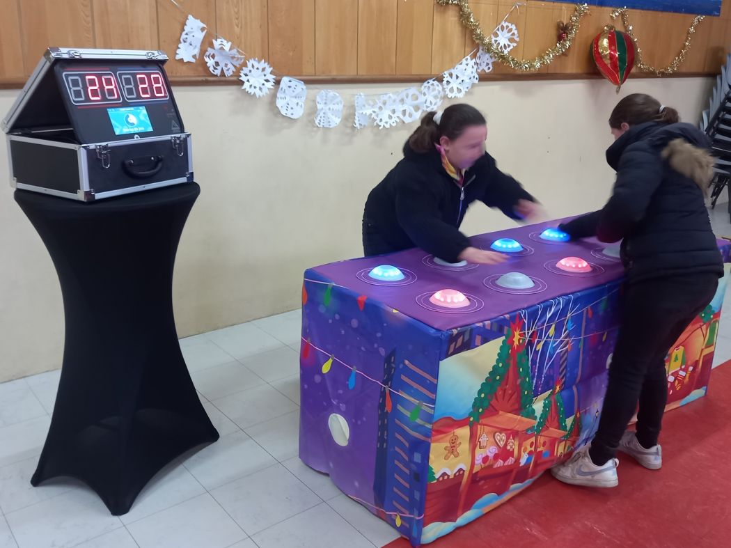 Une des animations incontournable pour Noël: la table interactive où les reflexes et la rapidité des plus grands comme des plus petits seront mis à l'épreuve. La table est décorée sur le thème de Noël.