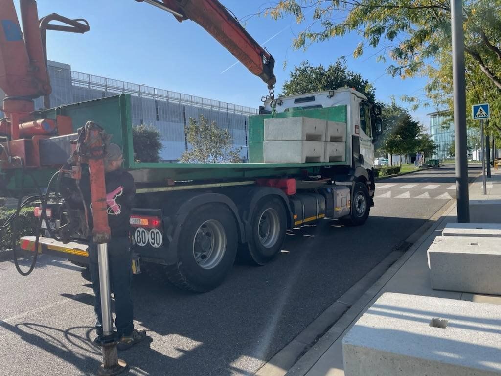 Nous vous proposons le transport et la mise en place de nos blocs bétons pour le lestage, l'amarrage, l'ancrage ou le haubanage de votre matériel, partout en France.
