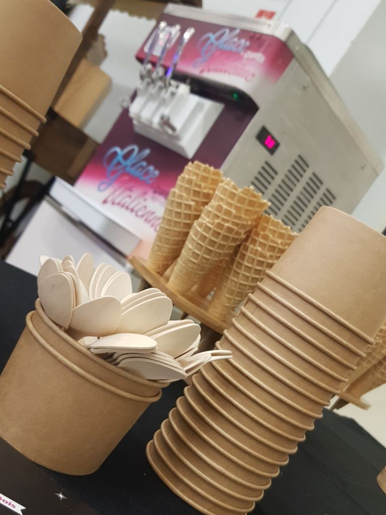 + 120€ le pack de consommable pour 80 à 100 glaces à l'italienne en fonction du remplissage des cornets (mix glace + cornets ou pots et cuillères)