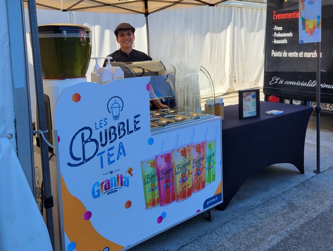 Le stand bubble tea est uniquement disponible en formule prestation sur site avec notre personnel de service.