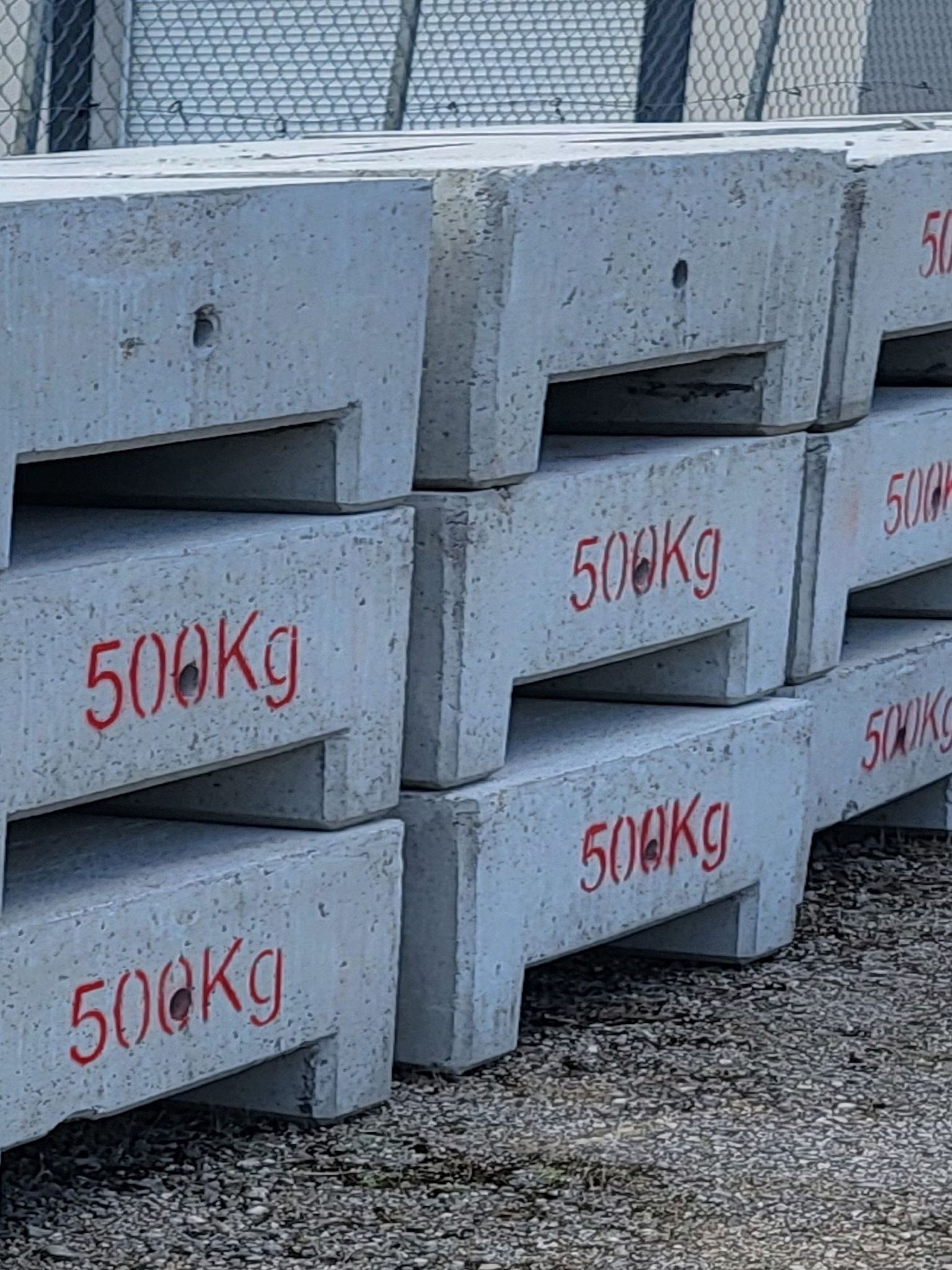 Nous mettons à la location un parc de 66 poids béton pour le lestage, l'amarrage, l'ancrage et le haubanage de votre matériel.