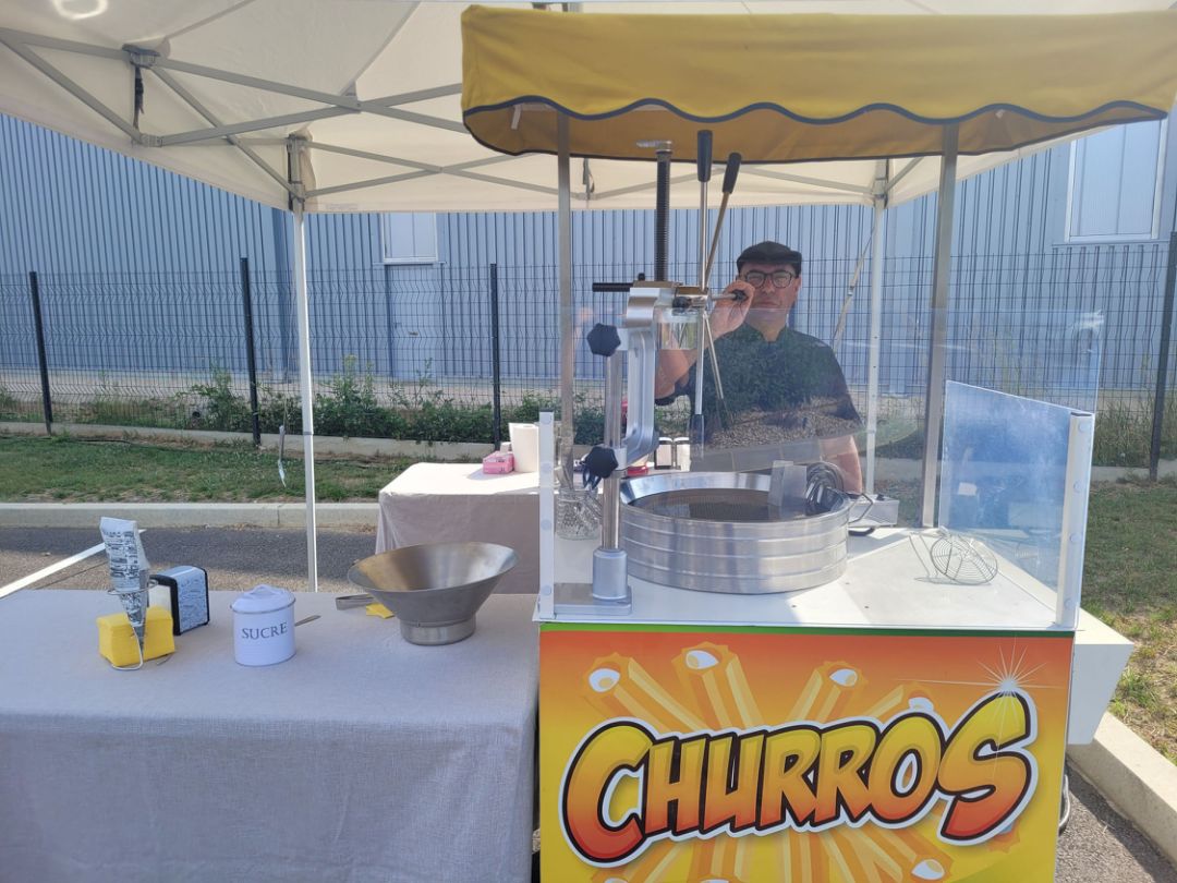 Le stand churros est uniquement disponible en formule prestation sur site avec notre personnel de service.