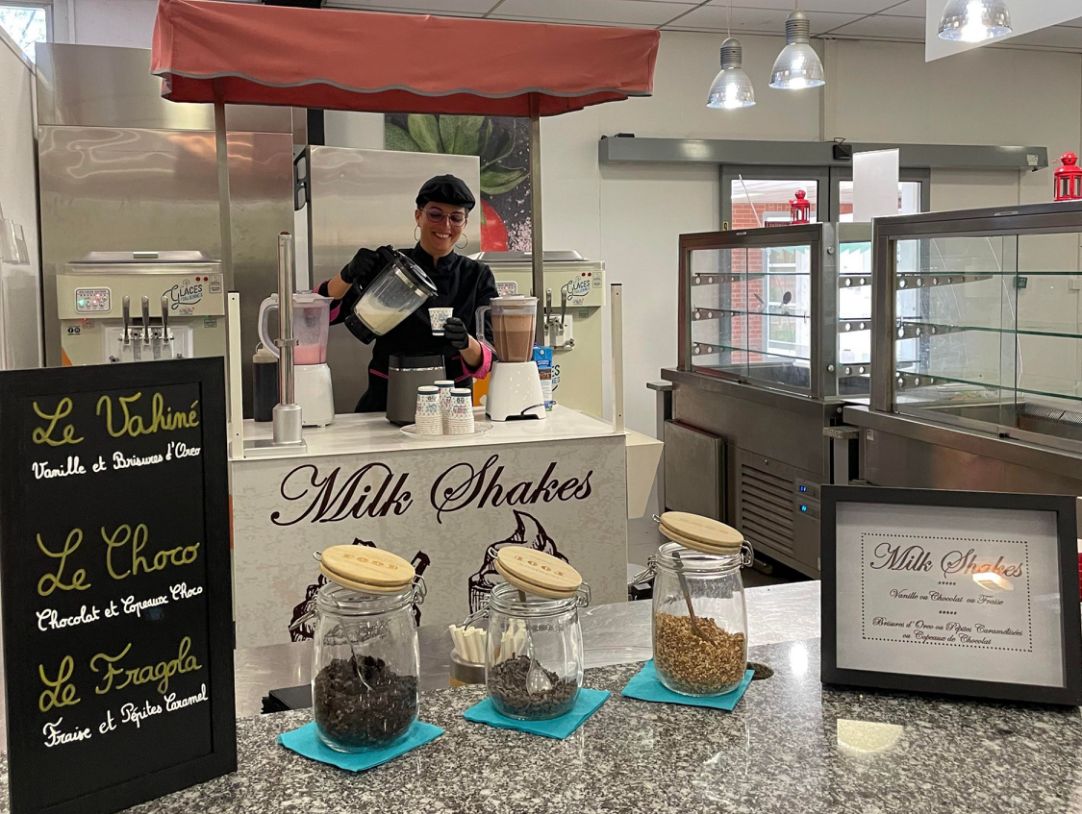 Le bar à milkshakes est uniquement disponible en formule prestation sur site avec notre personnel de service.
